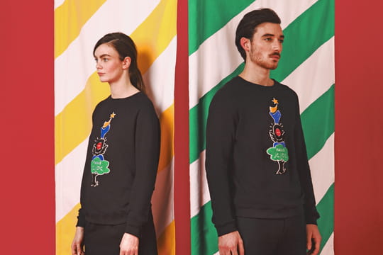 Faguo, qui a ouvert sa toute première boutique cette année, amène dans cette collaboration sa célèbre basket en toile Cypress que JCDC customise en noir et couleurs primaires, si caractéristiques de l’ADN du créateur. On raffole des détails comme la doublure intérieure avec les dessins du designer, les extrémités des lacets colorées, et surtout le message à l’arrière des chaussures "JUST" … "FOLLOW ME". Faguo a également proposé un sweat décontracté et jeune sur lequel Castelbajac a apposé son emblématique totem (ou plutôt "Tot’Aime"), réinterprété pour l’occasion avec un arbre à la base au lieu d’un nuage. En effet, n’oublions pas que la valeur ajoutée de Faguo repose sur son engagement écologique, consistant à planter un arbre pour chaque paire de chaussures achetée. Enfin, on retrouve la ceinture tressée de Faguo, également repensée par le roi de la pop fashion.