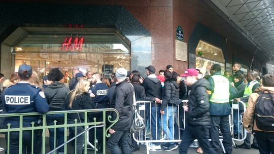 Censés faire rentrer les clients au compte-gouttes, les vendeurs ont été surpris par des mouvements de foule qui les ont forcés à prendre des mesures de sécurité. Résultat, on attend les forces de l'ordre pour envisager une nouvelle levée de rideau boulevard Haussmann. "Il paraît qu'ils n'ont même pas pu ouvrir sur les Champs Élysées !" se lamente notre cliente chargée. Face à une telle affluence, l'encadremment tente de trouver des solutions en fermant momentanément les magasins, tandis que le cortège des acheteurs continue de s'étoffer.