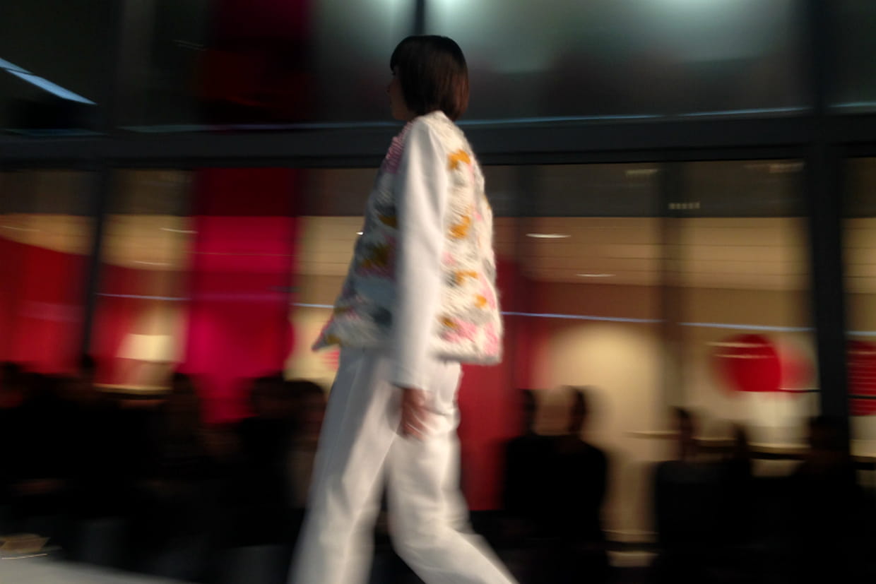 Lors du passage du groupe Muffle Up, on découvrait la fameuse veste à empiècements tricot, enfin portée et vivante, sur le podium de Camaïeu. On prenait alors l'ampleur du travail de ces élèves, déjà si talentueux et inventifs, qui proposaient, ce soir-là, des vêtements séduisants dans lesquels on pouvait aisément se projeter.
