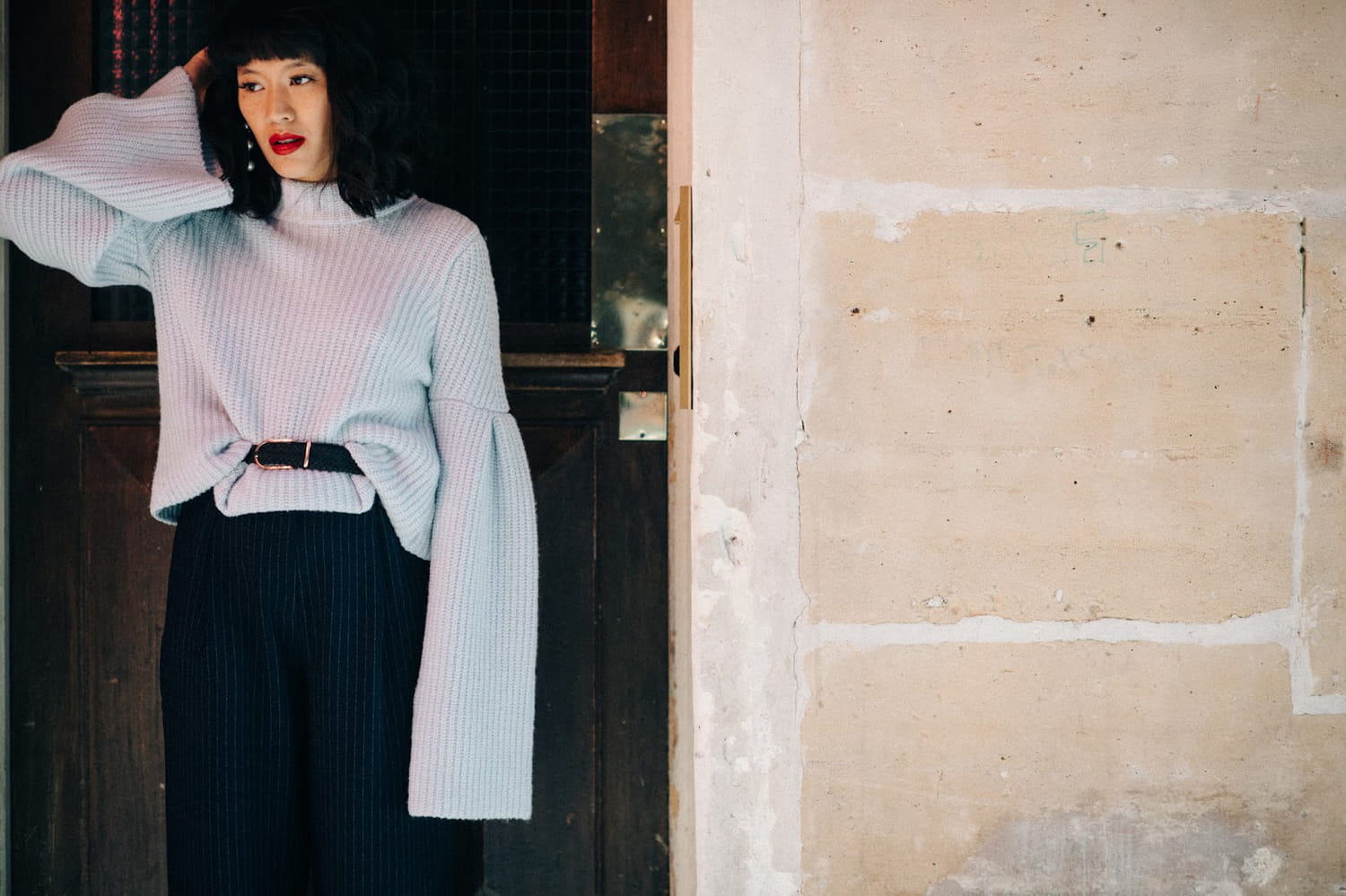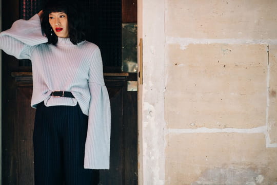 Main dans la main avec H&M, la blogueuse aux 90k exhibe un look qui réconcilie confort et allure. Les clés du succès : matières chaudes et volumes mode, le tout agencé avec simplicité. L'incontournable pull en maille se pare d'un col cheminée mais surtout d'une paire de manches amples et xxl qui engloutis les bras de Leeloo. En contraste, la longueur "cropped" du pull permet de dévoiler le pantalon large lainé et sa taille haute, souligné par une ceinture placée stratégiquement pour créer un plissé central. Un effet de style qui twiste complètement la tenue et casse son volume qui pourrait désavantager la silhouette. Côté motif, un rappel entre les côtes du pull et les fines lignes du pantalon bleu marine offre une touche assorti/désassorti subtile mais efficace. Aux pieds, la paire de boots dorées vient illuminer les couleurs plutôt sobres de l'ensemble. Un look qui ne manque pas de classe pour traverser la saison des glaces.