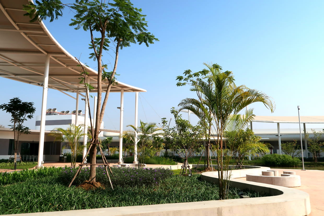 Le site de Lamphu bénéficie de la certification d'excellence LEED (Leadership in Energy and Environmental Design / norme américaine) et répond aux plus hauts critères d'exigence en matière de développement durable. À travers son architecture (faite en partie de matériaux recyclés) et ses procédés de fabrication, Pandora excelle dans sa démarche écologique.