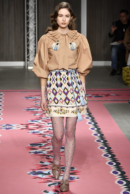 En février dernier, la griffe de luxe défile lors de la fashion week milanaise. Le défilé est une ode à la commedia dell'arte italienne. Les vêtements sont truffés de personnages d'Arlequin, de danseurs, de chevaux de cirque. Des Pierrot se glissent sur les talons des escarpins. Des jupes et des collants reprennent le motif damier que l'on retrouve sur les costumes de théâtre de l'époque. Les coupes, elles, sont modernes : volants, cols Bardot, manches imposantes…