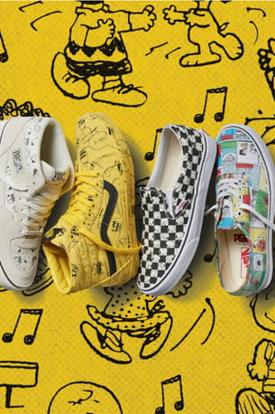 • Qui : la marque de chaussures et de vêtements Vans et les illustrations de Charles M. Schultz, père de Snoopy et Charlie Brown
