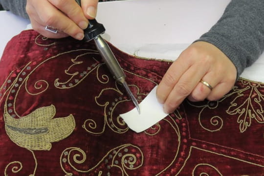 Pour mettre en pratique ses valeurs d'engagement et d'authenticité, la Vallée Village est devenue mécène dans un domaine où on ne l'attendait pas : la rénovation de pièces mode historiques. Ainsi, dans le cadre de son partenariat avec les Arts Décoratifs, la Vallée Village a décidé de financer la remise en état de cinq chefs-d'œuvres emblématiques des collections du musée. Ces dernièrs, trop détériorés par le temps, n'avait jamais été montrés au public et le sont désormais, dans les Period Rooms du musée, grâce à l'aide financière du centre outlets et au talent d'une équipe remarquable de restaurateurs du patrimoine dirigée par Emmanuelle Garcin. Un travail fascinant, minutieux et de longue haleine qui nous permet aujourd'hui d'admirer entre autre une cape en velours de soie rouge brodée au fil d'or ayant appartenu à un aristocrate français de la cour royale lors de la première moitié du XVIème siècle. Trois robes ont également fait l'objet de réparations méticuleuses : une robe à la française en soie florale des années 1770 ayant très certainement appartenu à Sidonie Laborde, lectrice de Marie-Antoinette, une robe en soie Gros de Tour orange à motifs plumes signée par l'inventeur de la haute couture parisienne Charles-Frederick Worth sur commande de madame Franklin-Gourdon Dexter, mais aussi une tunique en velours de soie brodée verte de 1922 sortant du dressing d'Andrée Spinelly, célèbre actrice de la Belle Epoque et réalisée par son ami, le grand couturier Paul Poiret. Enfin, on découvre également dans l'une des salles du musée un chapeau pastoral datant de la fin du XIXème siècle, dans un style très en vogue à cette époque, appartenant à une dame de l'aristocratie et porté dans le cadre de promenades champêtres chics.
