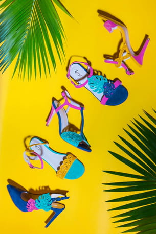 • Quoi : des sandales et escarpins ornés de cristaux ainsi qu'une pochette