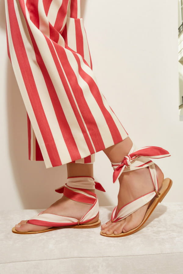 • Quoi : une collection de paires de nu-pieds coordonnés aux pantalons de la créatrice