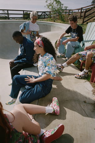 • Quoi : 46 pièces de prêt-à-porter pour homme et femme, ainsi que des accessoires, et deux modèles de baskets Vans, aux imprimés floraux, issus des archives de Kenzo. Une collection unisexe et inspirée de la culture skate, propre à la marque Vans