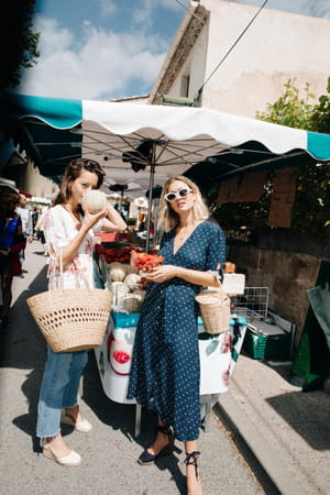 Avec ses 275 000 followers sur Instagram, Anne-Laure Mais, plus connue sous le nom d'Adenorah, est l'une des influenceuses les plus en vue de la place française. Suivie, aimée et imitée, la jolie blonde originaire de la côte basque a su séduire bon nombre de jeunes femmes par son style à l'identité bien définie, entre féminité et rétro. Il lui fallait juste rencontrer la bonne personne pour pouvoir enfin imaginer sa propre collection de vêtements, des vêtements qui lui ressemblent attendus par toute sa communauté. C'est Philippe Corbin, fondateur de Léon & Harper, et l'équipe de la marque à la "french touch" qui ont très naturellement su écouter Adenorah et imaginer main dans la main avec elle un dressing estival aussi cohérent que séduisant. Philippe et Anne-Laure le revendiquent : Adenorah X Léon & Harper ce n'est pas une collab', c'est une rencontre humaine, un coup de cœur réciproque. C'est grâce à cette entente parfaite et cette admiration mutuelle que les deux parties ont réussi à fusionner pour proposer finalement six pièces fraîches et raffinées qui risquent de s'arracher. Déclinés en chemisiers sexy, en robes longues chemises décolletées et en petite robe légère à fines bretelles, les deux imprimés proposés seront notre dilemme de l'été : pois blancs sur fond marine ou fleurs rouges sur fond blanc ? En cas de choix inextricable, il reste encore l'incroyable combinaison pantalon à la coupe parfaite.