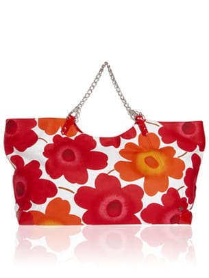 Sa grande taille séduira celles qui aiment avoir tout sous la main, de la natte de plage au roman de 1000 pages. Ses nombreuses poches sont très pratiques pour y ranger vos effets les plus précieux. Mais ce qu’on aime le plus, c’est son look seventies avec de grosses fleurs rouges pour donner du tonus. Prix : à partir de 130 euros