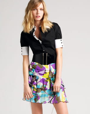 Avec ses jolis volants et ses motifs bariolés, sa coupe courte et sa matière ultra légère, voilà une jupe qui sent bon le printemps. Attention toutefois à ne la porter qu'avec un haut de couleur sobre car elle est déjà très originale.