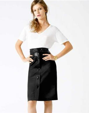 Deux-en un, cette jupe noire signée Ba&sh met à la fois la taille et les jambes en valeur. On aime le boutonnage sur le devant, qui permet de dévoiler les jambes. Avec sa coupe, elle a un petit côté rétro qui n'est pas pour nous déplaire !