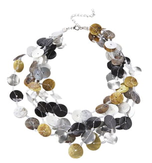 Avec sa multitude de pastilles nacrées de couleur grise, jaune et blanche, ce collier demeure d'une grande finesse. Il vous garantit un style à la fois original et délicat.
