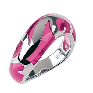 Cette bague en argent et résine rose est très originale par sa forme et ses motifs. Elle est résolument chic et se mariera très bien avec vos tenues les plus élégantes.
