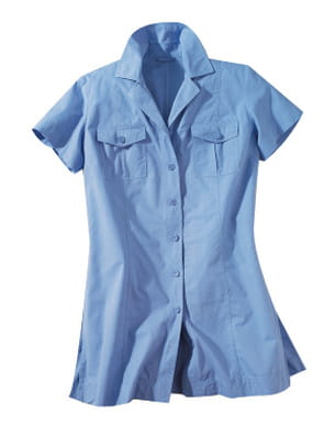 Léger pour l'été grâce à son mélange de coton et élasthanne, ce chemisier possède également une coupe très avantageuse pour la silhouette. En effet, sa longueur de 90 centimètres environ recouvre les rondeurs que l'on veut cacher et ses fentes sur le côté assurent un grand confort et une aisance de mouvement. Pas de doute, vous serez vite fan de ce modèle qui existe aussi en beige, bleu, orange et vert sapin.