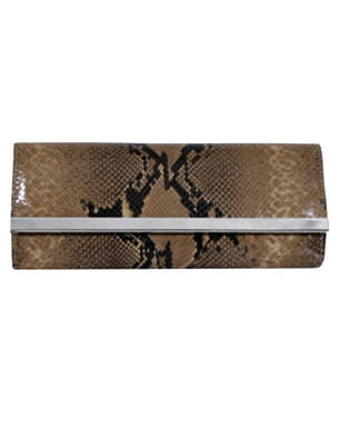 La nuit est tombée, c'est le moment de sortir votre pochette façon python pour faire sensation en soirée. En cuir imprimé, ce modèle forme "baguette" confèrera une élégance certaine à votre robe ou à votre plus beau tailleur pantalon. Une manière d'apporter une petite note d'évasion à votre look.
