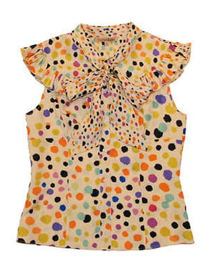 L'été n'est pas tout à fait terminé et vous n'avez pas encore envie de penser aux affaires d'hiver ? Normal ! Voici une tenue légère et colorée qui devrait vous aider à franchir le cap du mois de septembre sans aucune difficulté. Ce chemisier joliment imprimé de pois multicolores saura égayer bon nombre de vos tenues pour la rentrée.