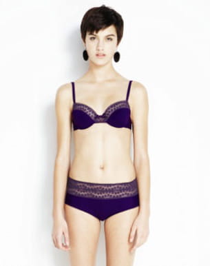 Outre un marron make up et un noir classique, cet ensemble de Pincesse Tam Tam se décline en version bleu collège. Il allie la douceur de la microfibre à une fine dentelle jacquard pour un effet des plus féminins.