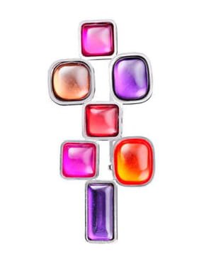 Composée de pastilles en plexi, la broche de Skalli est pétillante de couleurs ! Serties dans un métal argenté, les bulles roses, oranges et violettes s'associent pour former un bijou lumineux, et bientôt indissociable de vos tenues.