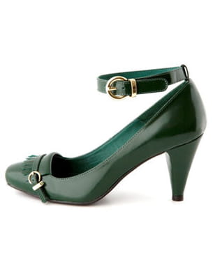 Comment ne pas aimer ces escarpins en cuir glacé d'un joli vert foncé ? Une lanière qui orne la cheville, une bride décorative sur le devant, des talons pas trop hauts, mais assez pour faire de jolis mollets : on adore !