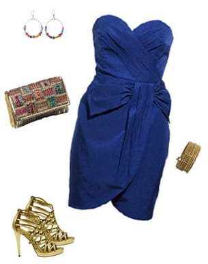 Un soupçon d'or et quelques touches de couleurs vitaminées accompagnent cette robe bustier d'un joli bleu roi. Avec cette tenue à la fois chic, tendance et féminine, vous êtes prête pour terminer l'année en beauté !