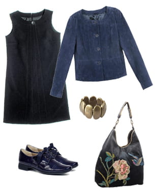 Belle maman vous connaît bien à présent... Mais ce n'est pas une raison pour ne plus prêter attention à votre look. Pour un repas de famille, associez à votre fameux basique une veste en daim et des derbys ultra tendance. Côté accessoires, un bracelet or vieilli et un sac brodé un peu rétro vous donneront une allure de femme féminine et élégante en toute circonstance.