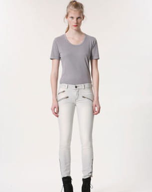 Délavé au point d'être blanc, ce jean joue la carte de l'originalité avec ses poches et ses bas zippés. Un moyen de sortir du lot et d'offrir un petit côté rock à la silhouette. A vous de choisir si vous le porterez complètement fermé ou un peu ouvert dans le bas.