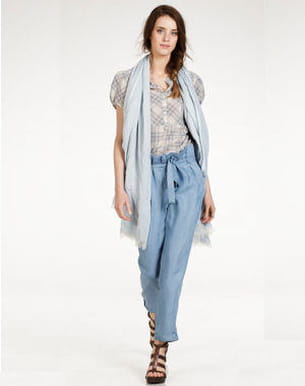 Pour passer un bon moment au cinéma, choisissez une tenue confortable qui reste classe comme ce pantalon large en tissu chambray. On l'assortit d'une blouse légère et d'une étole, histoire de ne pas prendre froid ou de se cacher si le film fait peur !