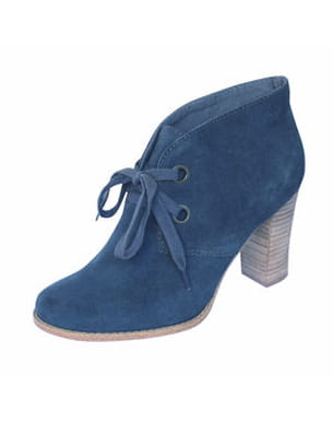Déjà en vogue cet hiver, les derbys à talon surfe sur la vague de leur succès. En cuir velours bleu, elles sortent de l'ordinaire et cassent les codes des traditionnelles chaussures à lacets.