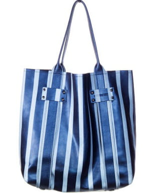 On ne présente plus le célèbre sac de Stéphane Verdino, avec sa forme reconnaissable entre toutes... Chaque saison, le créateur le décline dans de nouveaux coloris. Eh bien en ce printemps-été 2010, il nous surprend et nous ravit avec des rayures verticales dans des teintes bleues.