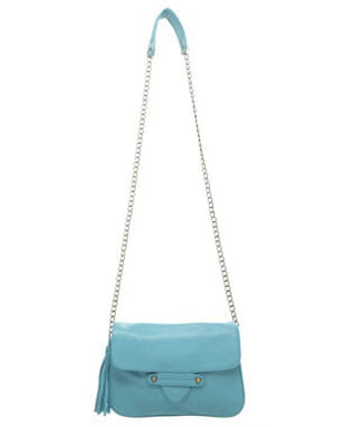 Tendance, cette petite pochette en cuir retenue par une longue chaîne est l'accessoire idéal pour accompagner vos tenues printanières. Sa couleur acidulée, son petit pompon ainsi que sa fermeture à rabat sont autant de détails qui nous séduisent au premier coup d'œil. A adopter tout de suite !