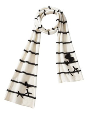 Un vent marin souffle sur cette écharpe en maille très tendance. Des petits noeuds s'invitent à bord pour séduire les modeuses. Cet accessoire indispensable de l'hiver s'impose comme un cadeau fashion et utile. A assortir au béret de la même collection ! Collection automne-hiver 2010-2011