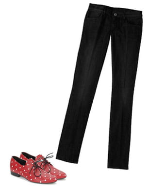 Le jeans est déjà un basique en soi ? Quand il est noir, il est encore plus passe-partout car il s'accorde avec absolument tout. Pour créer une pointe d'originalité, pourquoi ne pas porter ce modèle de Les Petites... avec des derbies originaux comme ceux de Stéphane Verdino ?