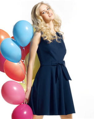 Must have ! Cette robe au coloris marine indémodable signée Jus d'Orange se fait aussi charmante avec son adorable nœud à la taille. Aussi bien avec une paire d'escarpins que de ballerines pour un look plus décontracté, elle s'adapte à toutes les situations. Vendue ! Collection printemps-été 2012