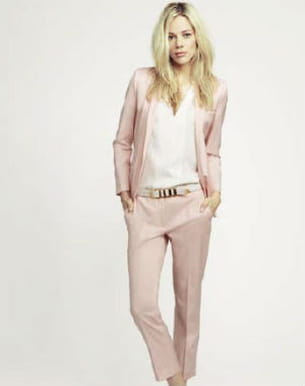 On joue la carte du masculin-féminin avec ce costume d'homme rose clair à porter sur une chemise ou un top.