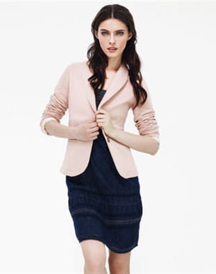 Quand la robe joue la carte du jean, on adoucit l'ensemble avec une veste poudrée.