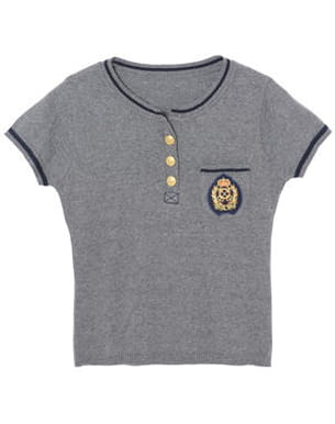 Jupette plissée, blazer, mocassins et écusson... Telle est la combinaison parfaite pour arborer un look preppy plus que jamais dans l'air du temps. Façon school girl américaine, la tendance reste chic et facile à adopter. Pour commencer, on opte pour un petit pull "college" à l'image de ce modèle gris et manches courtes signé Etam.