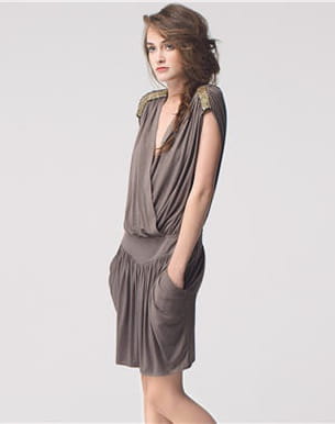 Tout à fait dans la tendance du moment, cette robe signée Sandro est un indispensable à notre dressing estival. Croisée au niveau de la poitrine, ceinturée et décorée de patchs or sur les épaules, elle nous fait littéralement craquer. A saisir de toute urgence !