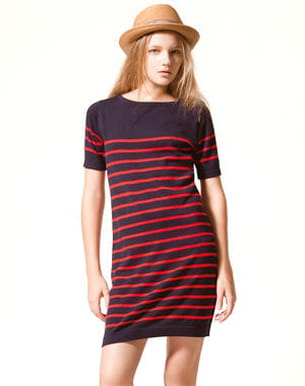 Ah la marinière, on ne s'en lasse pas ! En top généralement, mais aussi en robe chez Uniqlo, on est fière d'arborer les rayures ! Pour changer un peu, voici une version en marine et rouge à porter en toute simplicité. On l'enfile avec une paire de nu-pieds ou de ballerines et le tour est joué !