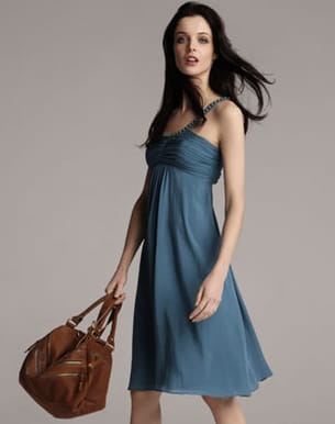 Pour celles qui souhaitent de la couleur sans tomber dans le côté flashy, cette petite robe signée 1.2.3 sera parfaite ! Avec ses détails chics et féminins et son joli jeu de plis au niveau du décolleté, elle nous assure une allure certaine.