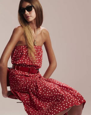 Entre élégance et modernité, cette robe rouge à pois reste fraîche et facile à porter. On aime la forme bustier et la taille ceinturée qui confère une touche de classe supplémentaire à cette tenue signée Laurence Doligé.