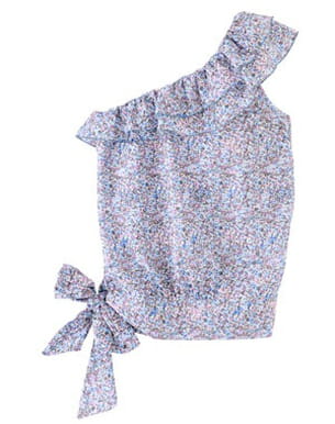 On aime l'esprit néo-romantique de ce top asymétrique. Son imprimé Liberty, ses volants et son lien à nouer sur le côté lui donnent un côté hippy chic qui se mariera à merveille avec un jean, une jupe ou encore un petit short. Une pièce phare de l'été à adopter sans hésiter.