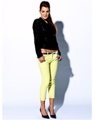 Marre du traditionnel jean bleu ? Optez pour ce modèle signé Kookaï à la couleur jaune pastel qui annonce un printemps tout doux. Une coupe façon pantacourt que l'on aime avec ses ourlets retroussés pour rester dans la tendance. Collection printemps-été 2011