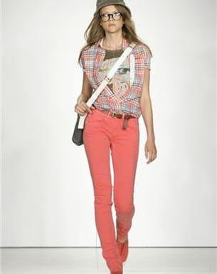 On le veut ! La marque british Pépé Jeans propose un jean slim taille haute avec une couleur toute douce pour aborder les beaux jours. Ce rose corail est parfait pour mettre en avant les silhouettes élancées. Collection printemps-été 2011