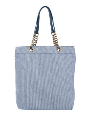 Ce sac Monoprix rayé bleu et blanc ravira les fashionistas adeptes de la tendance marine qui fera encore fureur cette saison.  On aime les anses originales, façon chaîne et en cuir, qui donnent un côté plus rock'n roll à ce modèle. Collection printemps-été 2011