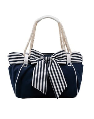 New Look sort un vrai sac marin qui a l'air tout droit sorti d'un épisode de "La Croisière s'amuse" ! Le gros nœud bleu et blanc, assorti à la large bande qui entoure le haut du sac, apporte un petit côté rétro très tendance. Collection printemps-été 2011