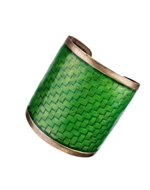 Un bracelet qui a lui seul donne tout le style à votre tenue. Il illumine nos looks les plus sobres ou complète avec habilité les ensembles hauts en couleur, dont certaines ont le secret. L'effet de matière paille en fait un accessoire de l'été indispensable. Collection printemps-été 2011