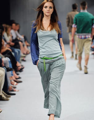 Si vous faites le choix de rester chez vous en compagnie de votre homme, ne laissez pas votre vieux jogging prendre le dessus sur votre look ! Pour une allure décontractée et stylée, Benetton propose un ensemble pantalon large avec un top couleur vert d'eau et un joli cardigan bleu. La zen attitude s'empare de vous pour votre plus grand plaisir...