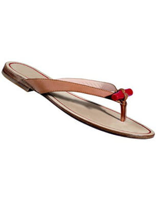 La classe absolue ! Voici venue la tong signée Longchamp pour aller avec sacs préférés si on le souhaite. On retrouve donc sur le dessus le fameux fermoir de la ligne "Roseau", en rouge donc, mais aussi en noir, blanc et bleu sur ce modèle tout en cuir. Et saviez-vous que la bague existait aussi ?