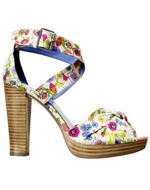 La saison printemps-été 2010 est décidément placée sous le signe du Liberty ! Pour notre plus grand bonheur, on voit éclore de charmantes petites fleurs sur ces chaussures au talon bois plus que jamais dans l'air du temps. Un must-have à saisir chez H&M.