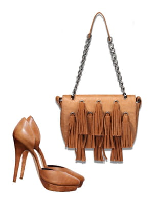 Du cuir, du camel et des franges... Nous voilà en mode hippy chic ! Elégant avec sa jolie chaîne et facile à porter, ce sac de Zara accompagnera nos jeans, shorts et jupettes cet été. Et assorti avec ces escarpins de H&M piles dans le même ton, on sera juste au top !